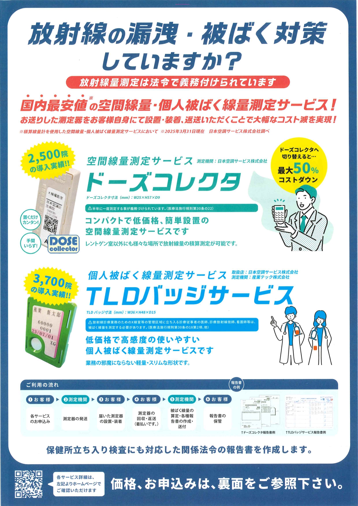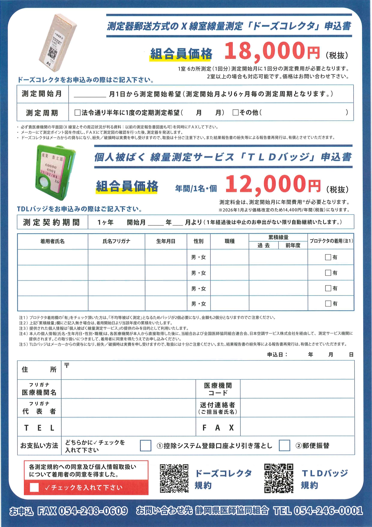 個人被ばく線量測定サービス「TLDバッジ」につきまして 2026年1月より価格改定となりますのでお知らせいたします。 現行価格12,000円(税抜き)/年間/1名・1個 ⇒ 価格改定後14,400円(税抜き)/年間/1名・1個