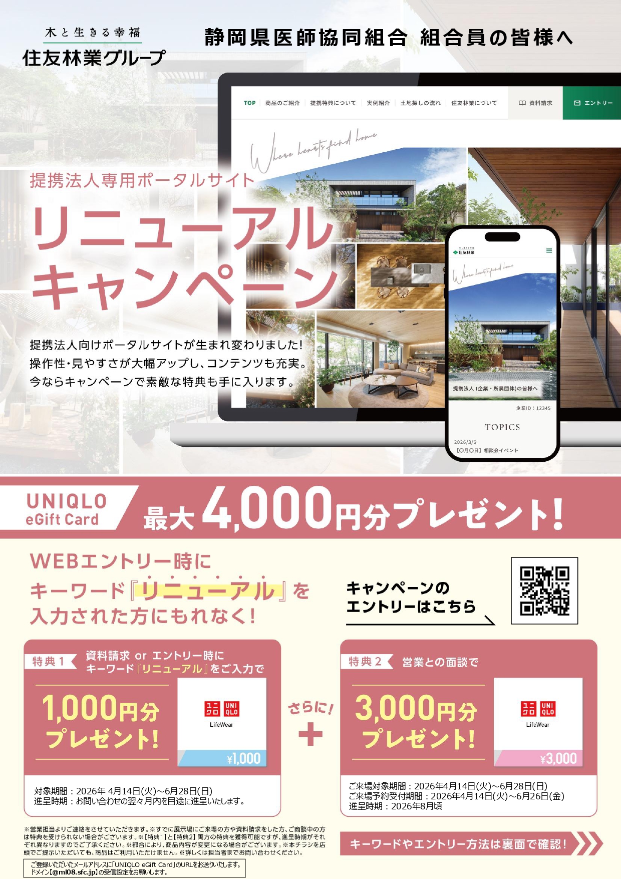 静岡県医師協同組合が提携しております住友林業の専用ポータルサイトが、このたびリニューアルいたしましたのでご案内いたします。